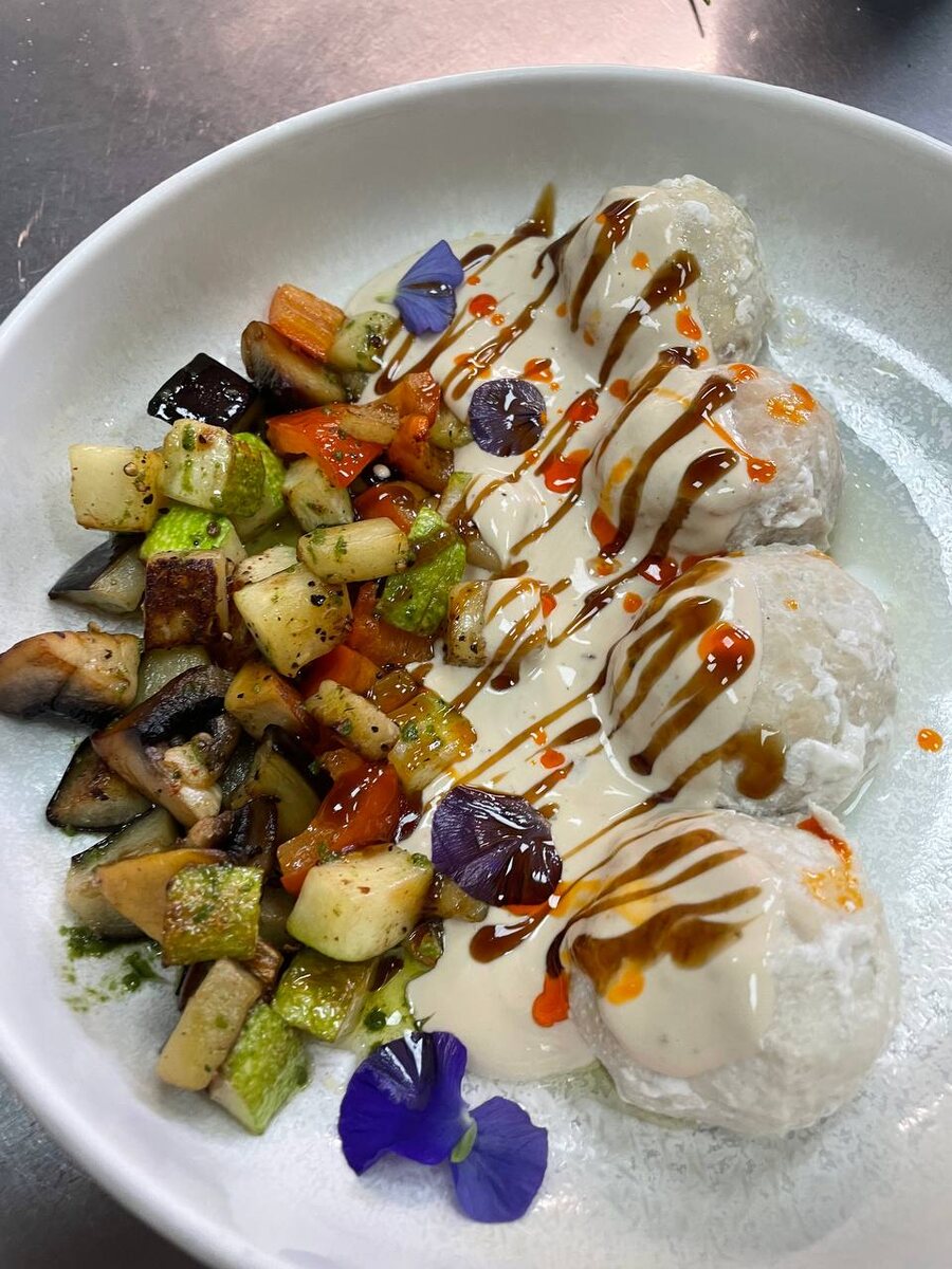 Меняю подачи -тут котлетка из индейки с овощами и сливочным соусом