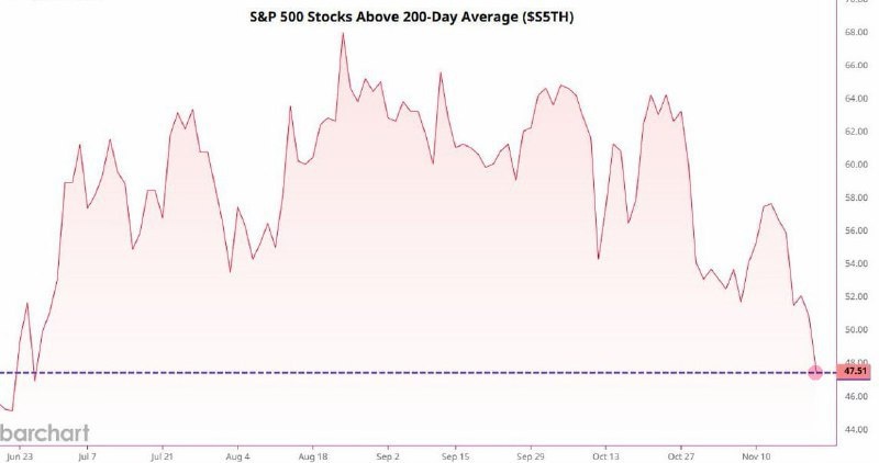 📉 Тревожный сигнал: акции SP500 теряют поддержку 200-дневных средних Рынок акций США показывает признаки ослабления - количество акций SP500, торгующихся выше своих 200-дневных скользящих средних, упало до 50-55% с 76% ранее в году. Индекс SP500 впервые за 139 торговых сессий опустился ниже 50-дневной средней, что технические аналитики рассматривают как сигнал к возможной коррекции. Однако утверждения о том, что это автоматически означает проблемы для Bitcoin, не подтверждаются реальными данными. Рынок переживает смену настроений после сильного роста с апреля 2025 года, когда индекс вырос почти на 38%. #новости #БезПафосаФинансы #SP500 #акции #техническийанализ