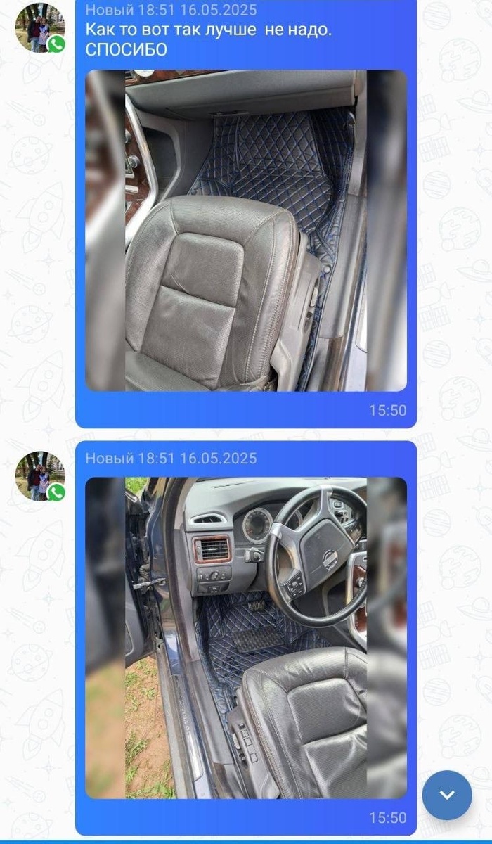 🫶 Клиенты в восторге, и мы с ними! 🚘 Volvo xc70, 2013 г.в. На фото: ◾️ 3D-коврики из экокожи Премиум, чёрный с синей строчкой Такие отзывы греют душу! 🥰 #отзыв Хочешь коврики, которые вызовут такой же восторг? Мы уже готовы шить! 🔗Пиши в @YAGiAuto_bot или звони +79585780148!