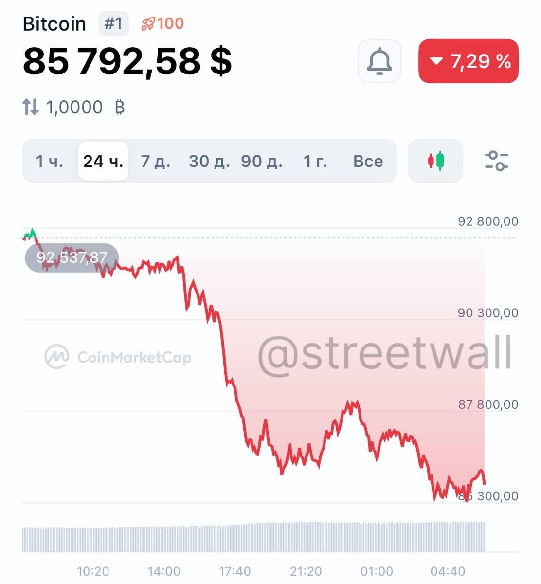 Биткоин упал до $85 000. Цена биткоина снизилась до уровня в 85 000 долларов. ────────── ⚡️Важные новости – без лишнего шума!⚡️ Подпишись на канал и получай только суть: оперативно, чётко, по делу! 👉 ИнфоСплетник | @infospletnik