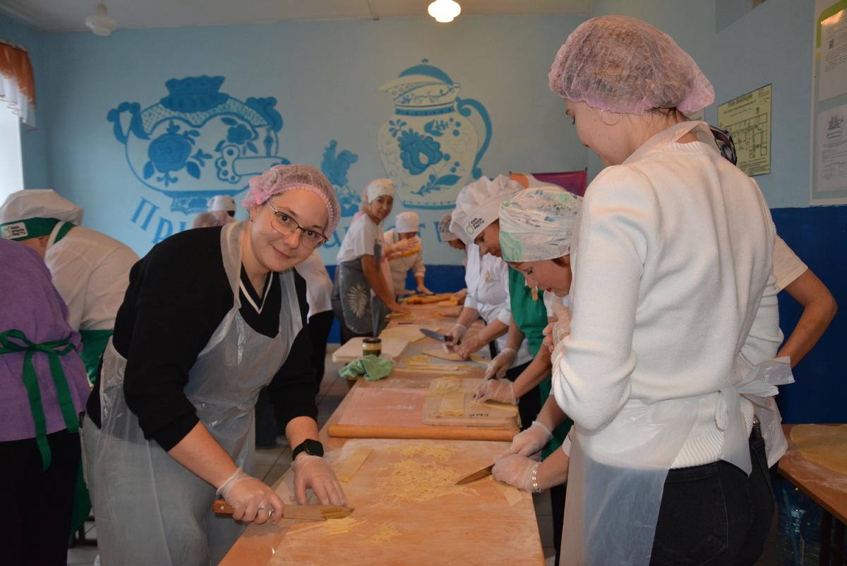 Аургазинские советники по воспитанию вместе с коллегами из Уфы организовали кулинарную акцию в поддержку военнослужащих. Вся приготовленная еда будет отправлена в зону специальной военной операции. Коллектив советников директоров по воспитанию Аургазинского района совместно с региональным ресурсным центром проекта «Навигаторы детства» организовал акцию по приготовлению домашней еды для участников СВО. Мероприятие прошло в столовой школы №3 села Толбазы, предоставленной директором учебного заведения Рифатом Абсалямовым. В акции приняли участие муниципальный координатор Светлана Ахмерова, региональный координатор Полина Трапезникова, 14 местных советников по воспитанию и 5 сотрудников уфимского ресурсного центра. Участники приготовили лапшу, а также традиционный сладкий чак-чак. Представители регионального центра доставили специальные наборы — «ложки здоровья» с мёдом и целебными травами для приготовления чая, «браслеты выживания» и письма от школьников. Вся приготовленная продукция вмес
