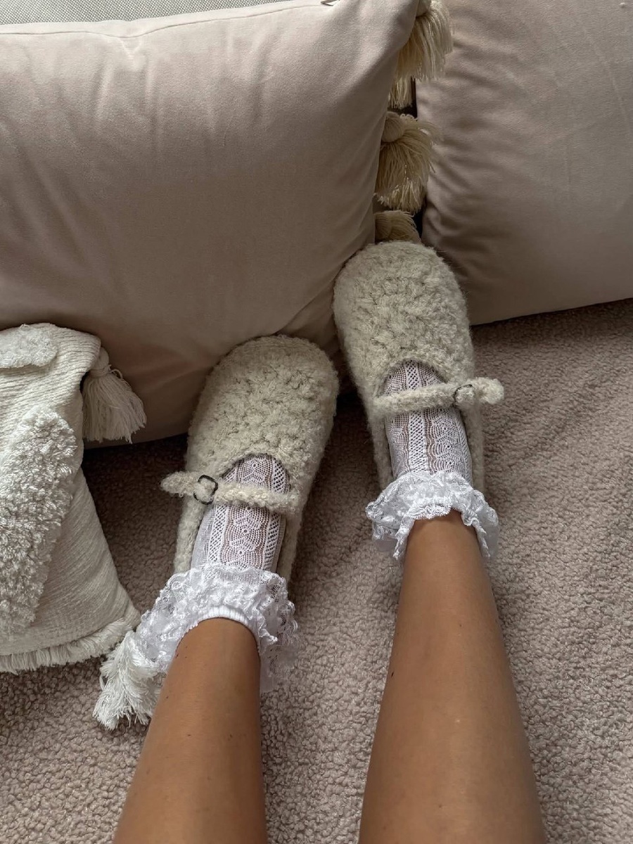 Эти домашние тапочки-балетки из буклированной пряжи сразили наповал 💔 ручная работа, кстати
