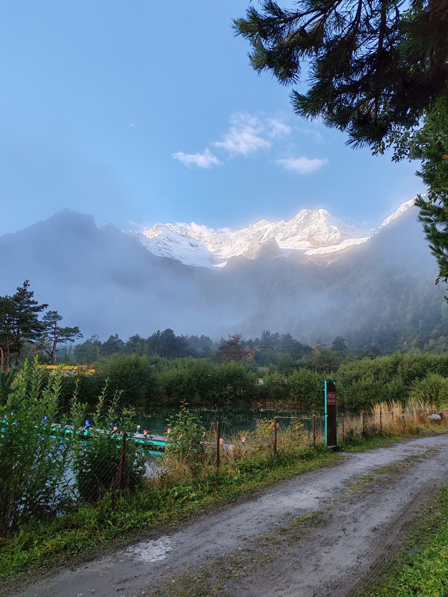 Утром на мгновение туман снова немного рассосался и показал снежную вершину, но потом снова затянулся. Хорошо хоть без дождя. После завтрака нас забрал Альберт и мы поехали дальше по маршруту в КБР на нашу новую базу на Парадроме Чегем. По пути заехали за осетинскими пирогами на обед и сделали остановку у небольшого водопада из скалы. Основной же нашей точкой на этот день был Язык Тролля в Безенги. Дорога туда от деревни идет по каменистому серпантину, где по классике с одной стороны пропасть. Организм уже напрягся, но это оказалась лишь прелюдия. Когда я увидел то, ради чего мы приехали, меня просто затрясло. Я очень боюсь высоты, и для меня было настоящим испытанием заставить себя попозировать для фото. Фотографировать Галю я напрочь отказался, так как был уверен, что она захочет свесить ножки со скалы, а у меня итак сердце уже не справлялось. Доверил это действие Ире, которая до этого сама позировала на краю. Адреналин настолько вымотал меня что следующую часть пути я просто спал.