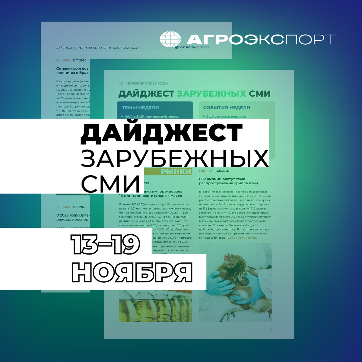Дайджест зарубежных СМИ от «Агроэкспорта» (13 – 19 ноября 2025 года)