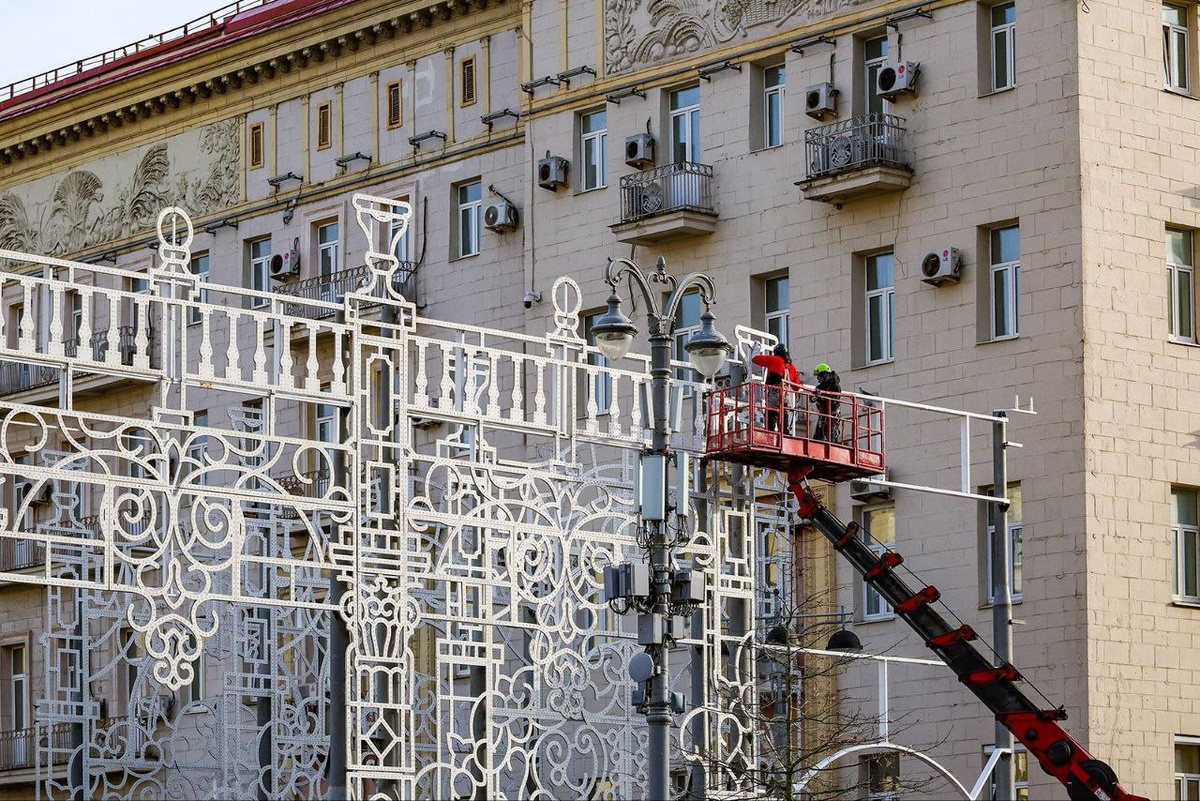 📍 На Тверской площади монтируют самую длинную новогоднюю арку в столице