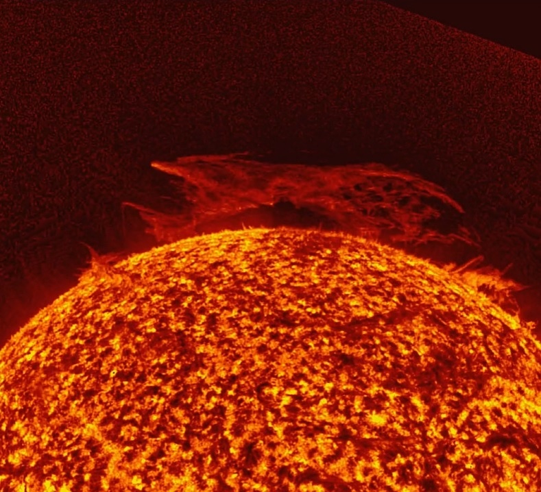Ночью 20 ноября с поверхности Солнца оторвался гигантский протуберанец, размер которого поразил даже ученых – его протяженность превысила миллион километров, что примерно в 80 раз больше диаметра нашей планеты. Об этом сообщают РИА Новости со ссылкой на Лабораторию солнечной астрономии Института космических исследований РАН. Феноменальное плазменное образование появилось на северном полюсе Солнца и уже получило название «царь-протуберанец» из-за своей аномальной величины. Явление зафиксировали специалисты с помощью современных наблюдательных инструментов, однако его источник – пока загадка. «Источник процессов на Солнце, которые привели к образованию такой гигантской структуры, находится на обратной стороне и недоступен для наблюдения. Три дня назад примерно оттуда же было выброшено крупное облако плазмы», – отметил ведущий специалист центра погоды «Фобос» Михаил Леус. Несмотря на внушительные масштабы, в ближайшие дни геомагнитных бурь в Пензенской области и других регионах России пок