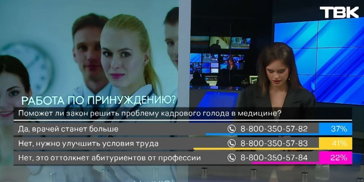 В ответ на пост 🔘Работа по принуждению? Результаты опроса в прямом эфире ТВК ➡️41% проголосовавших красноярцев уверены, что новый закон об обязательной отработке для студентов-медиков не решит проблему кадрового голода и нужно мотивировать улучшениями условий труда. ➡️22% считают, что это вообще оттолкнет абитуриентов. Уже появились сообщения в соцсетях от студентов, что они забирают документы. ➡️37% допускают, что медиков станет больше. Такой опрос мы провели в эфире среди зрителей ТВК, голосовать можно было также в нашей группе «ВКонтакте». Тем временем видим жаркие споры на эту тему в комментариях во всех наших соцсетях уже который день. А что думаете вы? ТВК