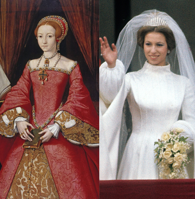 Единственная дочь королевы Елизаветы II была первой из четверых королевских детей, которая вышла замуж, и Анна случайно выбрала в качестве даты своей свадьбы 25-й день рождения своего брата, принца Чарльза. Известно, что Анна принимала самое деятельное участие при разработке дизайна своего подвенечного наряда. И идея полностью закрытого платья с необычной конструкцией рукавов принадлежала именно ей. Платье было сшито для принцессы Морин Бейкер, главным дизайнером Susan Smalls, и во многом отражало тюдоровскую эпоху. Простой силуэт «принцессы» идеально сочетал классику и элегантность, дополненный средневековыми рукавами-трубами и невероятно экстравагантным шлейфом длиной два метра, который оставил неизгладимый след в памяти поклонников королевской семьи. В качестве аксессуара к средневековому платью Анна выбрала роскошную тиару королевы Марии «Франж», в 1947-м именно в ней выходила замуж мама Анны, будущая королева Великобритании.