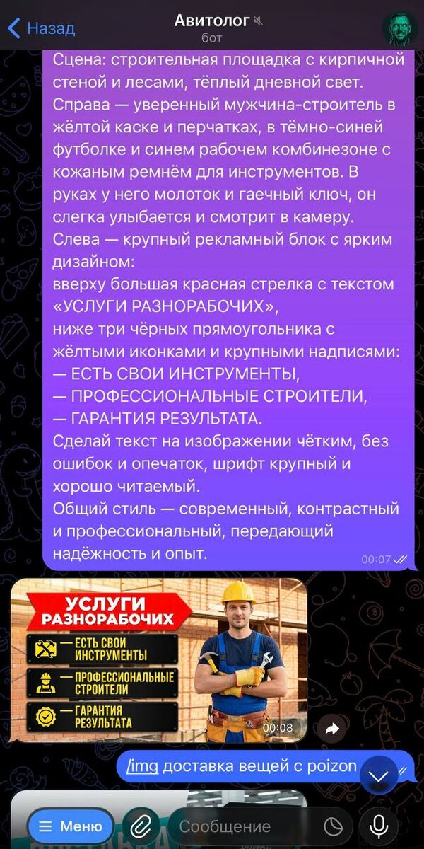 ИИ - не будущее, ИИ - это уже настоящее Привет, коллеги. Вчера вышла обнова, которая позволяет генерировать качественный фото-контент без ошибок и опечаток. Я уже протестировал функционал в нашем нейроавитологе. На скринах 2 моих первых промпта. Будем докручивать + добавим функционал загрузки своего фото, чтобы наложить на него инфографику. На следующей неделе поделюсь с вами результатами👌 Но я уже доволен как слон) А вы что скажете? Ставьте🔥, если считаете функцию полезной. 😎Горбачёв | Подписаться