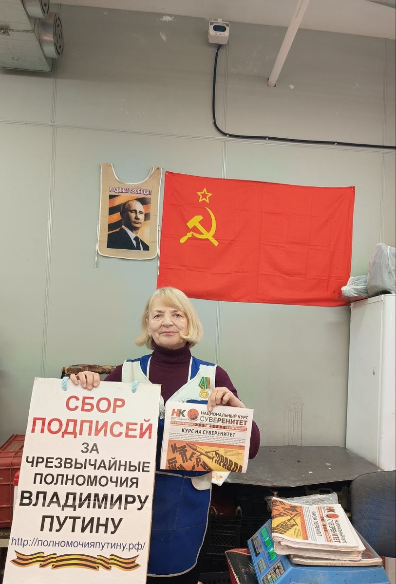 Что делать, чтобы выжить? 1. Вернуть суверенитет. 2. Отменить незаконную независимость Украины в Верховном суде России. 3. Нацелить на США ядерное оружие. ПолномочияПутину.рф Горбсуд.рф Межконтинентальные.рф В городе Воинской Славы Коврове продолжается битва за суверенитет, за победу в СВО — Сбор подписей за предоставление Владимиру Путину чрезвычайных полномочий во главе Госсовета как власти властей, раздача газет «Национальный Курс». На фото: Ковров, Владимирская область, 16 ноября 2025 года