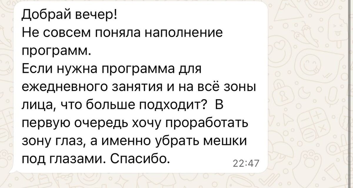 Добрый, Ольга! Рада знакомству! Все зоны и запросы комплексно прорабатываем начиная с причин на программе Три шага к омоложению. Зона глаз самая деликатная и первая реагирует на возрастные изменения. Когда начинаем проработку причин она первая откликается. Мешки - это следствие отечности. Первое с чем мы работаем это запуск лимфотока правильно, чтобы убрать не просто симптомы, а наладить работу и тем самым вернуть тканям упругость. В зоне глаз это важно, так как кожа тонкая, когда качество кожи улучшается поднимаются веки, уходят морщинки, темнота - глазки выглядят свежо, раскрываются. Очень хорошо будет если вы добавите мануальные техники в качестве дополнения. В меня есть любимые техники - вакуумный массаж - отлично для наполнения лица, упругости кожи и от отечности; пресс приемы для уплотнения тканей (связки, мышцы); SMAS-лифтинг - подтяжка всех структур лица. Я очень люблю эти техники - это приятно и дает эффект сразу. 👇🏻