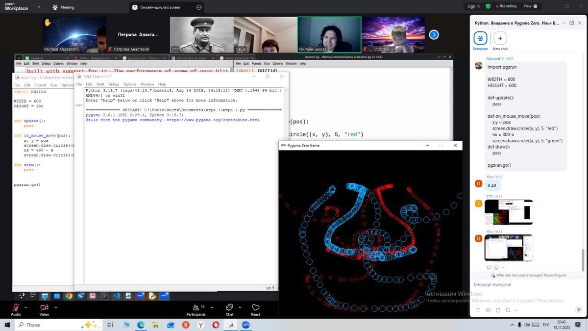 Рисуем симметрию: итоги второго модуля по Python! Завершился второй модуль курса по программированию на Python. И вот, что у ребят получилось — они написали программу, которая рисует потрясающие симметричные картинки! Это не только красиво, но и очень познавательно. Эта программа рисует симметричные картинки разными цветами. И за этим кажущимся простым результатом стоит целый пласт новых знаний. Всего за несколько недель мы освоили: 1. Как работает управление мышью — программа в реальном времени следит за каждым нашим движением. 2. Немножко математики — без нее никуда! Научились вычислять координаты симметричных точек, чтобы узоры были идеальными. 3. Работа с цветом — теперь мы можем не только задавать свои цвета, но и генерировать случайные, делая каждую картинку уникальной. 4. Градиенты — это уже высший пилотаж! Программа может медленно менять палитру, создавая по-настоящему гипнотические эффекты. Видеть, как твой код превращается в цифровое искусство — это невероятно вдохновл