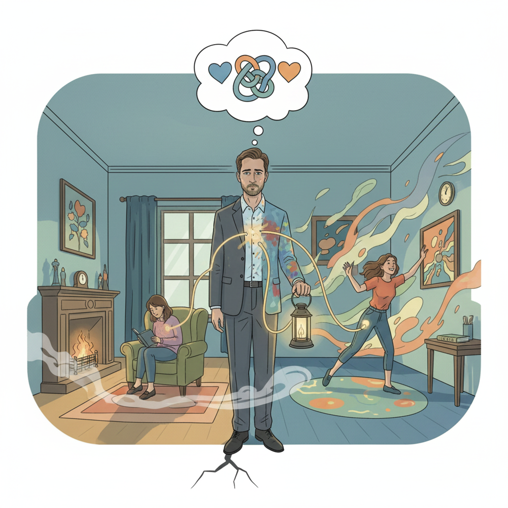 * Саботаж Покоя: Если бы вы остались только с "безопасным" партнером, ваше Ид восстало бы против скуки и подавленности. Если бы вы выбрали "страстного" партнера, ваше Супер-Эго наказывало бы вас за отсутствие стабильности и "неправильный" выбор. Двойная жизнь поддерживает вас в постоянном напряжении, но это напряжение — знакомое, предсказуемое и, в каком-то смысле, более безопасное, чем риск настоящего выбора и его последствий.