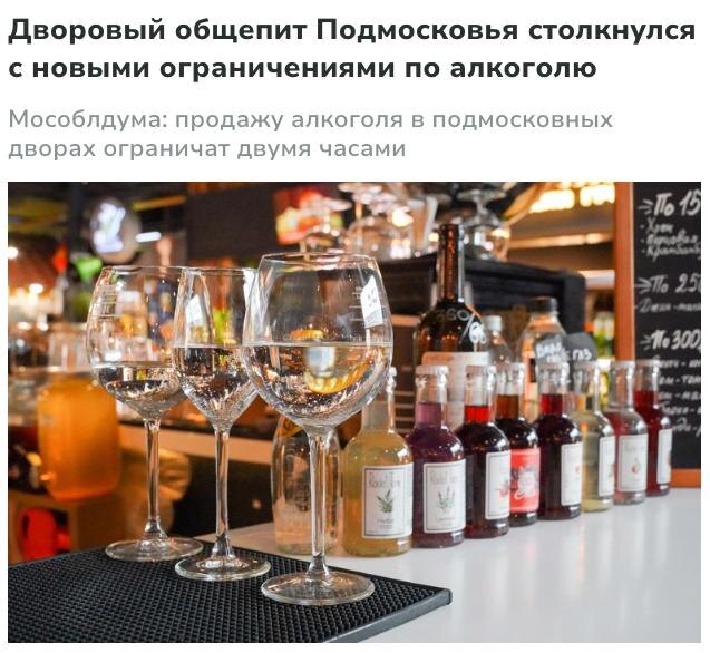🇷🇺 Алкоголь можно будет продавать только с 13 до 15 часов в подмосковном общепите во дворах