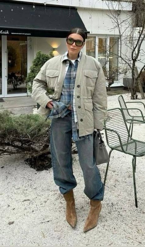 🔥РУБРИКА: ЧТО ГДЕ КУПИТЬ Тихонько приближаемся к зиме, погода диктует свои правила, и главное из них — многослойность. Показываю, как собрать образ, который станет рабочей лошадкой в вашей капсуле. Формула образа: 🤍Базовый слой: Рубашка в клетку (фактура, кэжуал-настроение). 🤍Утепляющий слой: Уютная куртка светлого оттенка (визуally облегчает образ). 🤍Нижний ярус: Широкие джинсы (тренд и комфорт). 🤍Акценты: Обувь на каблуке (элегантность) + классическая сумка (практичность). Почему это работает? Все элементы — базовые и отлично комбинируются друг с другом. Куртку можно носить с джинсами-скинни, джинсы — с объемным свитером, а рубашку — под трикотажный жилет. Сохраняйте формулу и ищите ссылки на альтернативный образ ниже👇 Куртка Лонгслив Рубашка Джинсы Обувь Сумка Очки