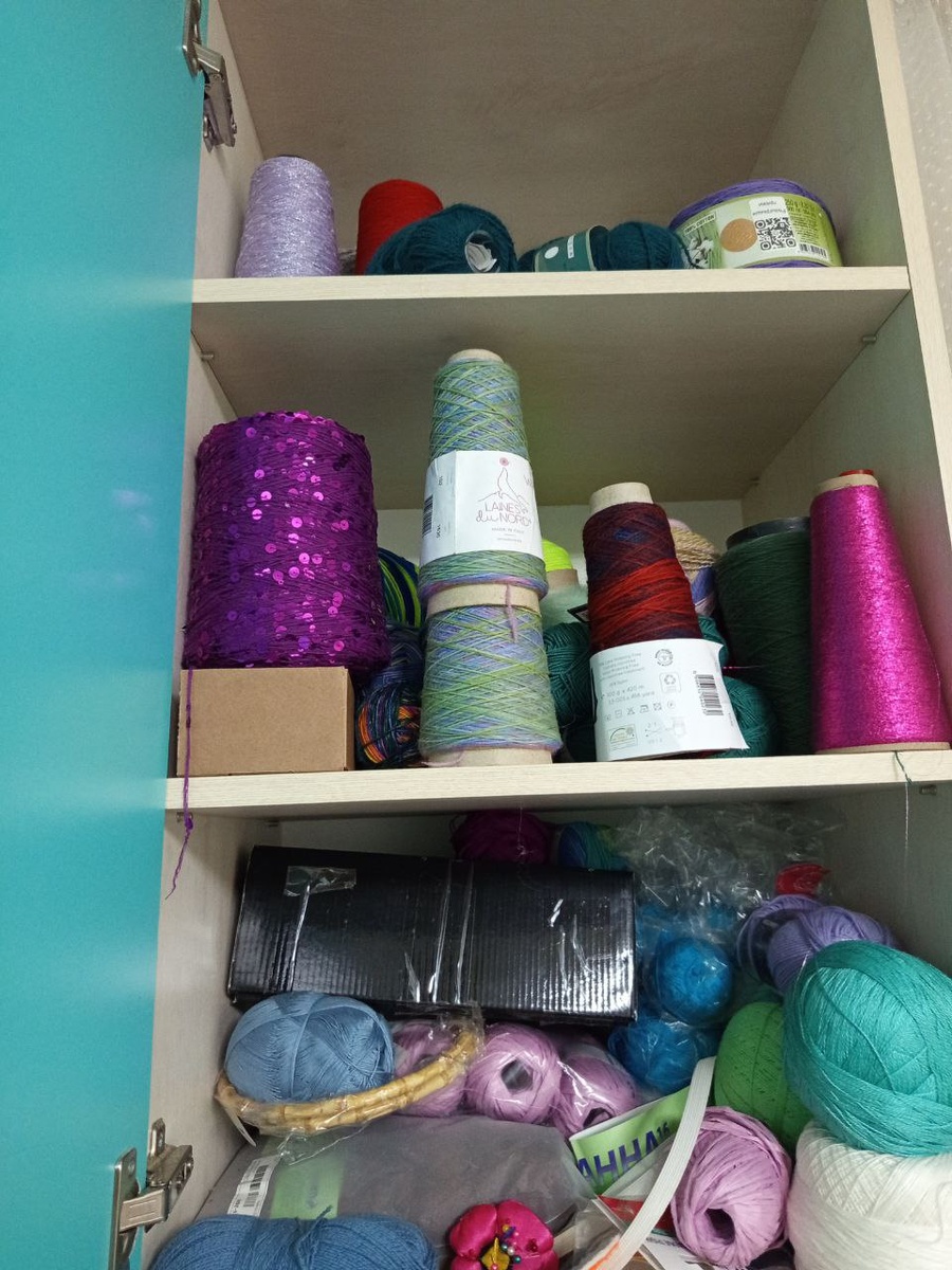 Ох уж эти закрома Всем приветик👋 Хочу поделиться болью, я не знаю как организовать свою пряжу, вернее как организовать такое количество пряжи... На фото полки которые , якобы прилично прибраны, но... Пряжа везде, в коробках , в контейнерах под письменным столом, в ящиках исменого стола, на книжных полках. Дочке сейчас 3 и письменный стол не особо ей нужен, но ведь время летит очень быстро и надо задуматься о школе, а это значит освободить ей стол. А моя пряжа значит должна выселиться куда-то. Вот я и задумалась об организации ее. Мечтаю о шкафчике на балконе, и большом шкафу в зале... Вот думаю смогу найти что хочу, или стоит заказывать. Еще думаю сделать ревизию... 🤔🤔🤔 Интересно будет посмотреть сколько у меня пряжи? И как лучше статью написать с миллионом фото, или лучше видео сделать?