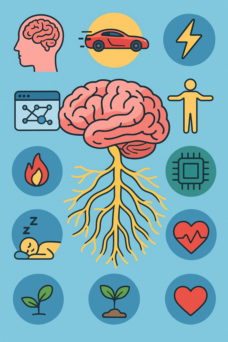 1. Мозг — самый «прожорливый» орган Он составляет всего 2% массы тела, но потребляет около 20% всей энергии организма. Даже когда ты просто сидишь — он жрёт как чемпион 🔥 ⸻ 2. Скорость нервных импульсов — как у спорткара Сигналы в нервах двигаются со скоростью до 120 м/с. Это быстрее, чем болид «Формулы-1» 🚗💨 ⸻ 3. Нервная система решает всё раньше, чем ты успеваешь подумать Большая часть реакций тела — это автоматические процессы. Мозг получает информацию последним. Ты думаешь уже после того, как тело отреагировало ⚡ ⸻ 4. У мозга нет болевых рецепторов Он сам боль не чувствует. Поэтому нейрохирурги могут оперировать пациента в сознании — мозг всё равно «молчит» ⚙️ ⸻ 5. Каждый нейрон — как мини-компьютер Один нейрон может иметь до 10 000 соединений с другими. Это сеть сложнее любой современной инфраструктуры интернета 🌐 ⸻ 6. Тело способно действовать без мозга Спинной мозг сам управляет некоторыми реакциями. Если ты рефлекторно отдёргиваешь руку от горячего — это сд