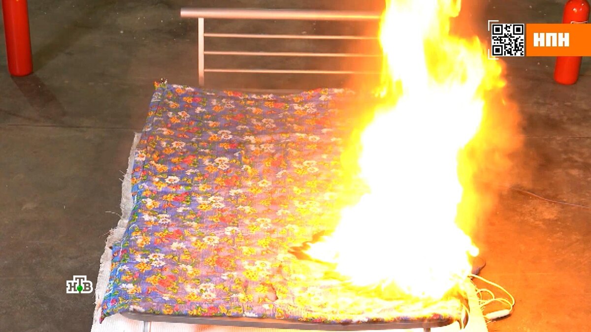 [ Смотреть видео на сайте НТВ ] С приближением зимы в магазины и на маркетплейсы все чаще предлагают обзавестись электроодеялами. Такие грелки еще и полезны для здоровья — сухое тепло помогает снять усталость и мышечную боль. Однако все чаще сводки происшествий шокируют жуткими сообщениями о том, как электроодеяло подожгло квартиру. Программа «НашПотребНадзор» выяснила, почему они горят. Электроодеяло — это, по сути, это сеть тонких нагревательных элементов. Самое слабое место — область, где в одеяло входит питающий провод. Евгений Кашкин, кандидат технических наук: «натянулись провода, а соответственно, это место стыка. И здесь, если произойдет деформация, то мы оголим провода, и может быть короткое замыкание». Даже маленькая искра в месте повреждения может поджечь ткань. Впрочем, это не единственная причина пожаров. Нагревательные нити могут оголиться при складывании электроодеяла. А еще его может прокусить кто-то из домашних питомцев. Эксперт Евгений Кашкин сымитировал такую поломку