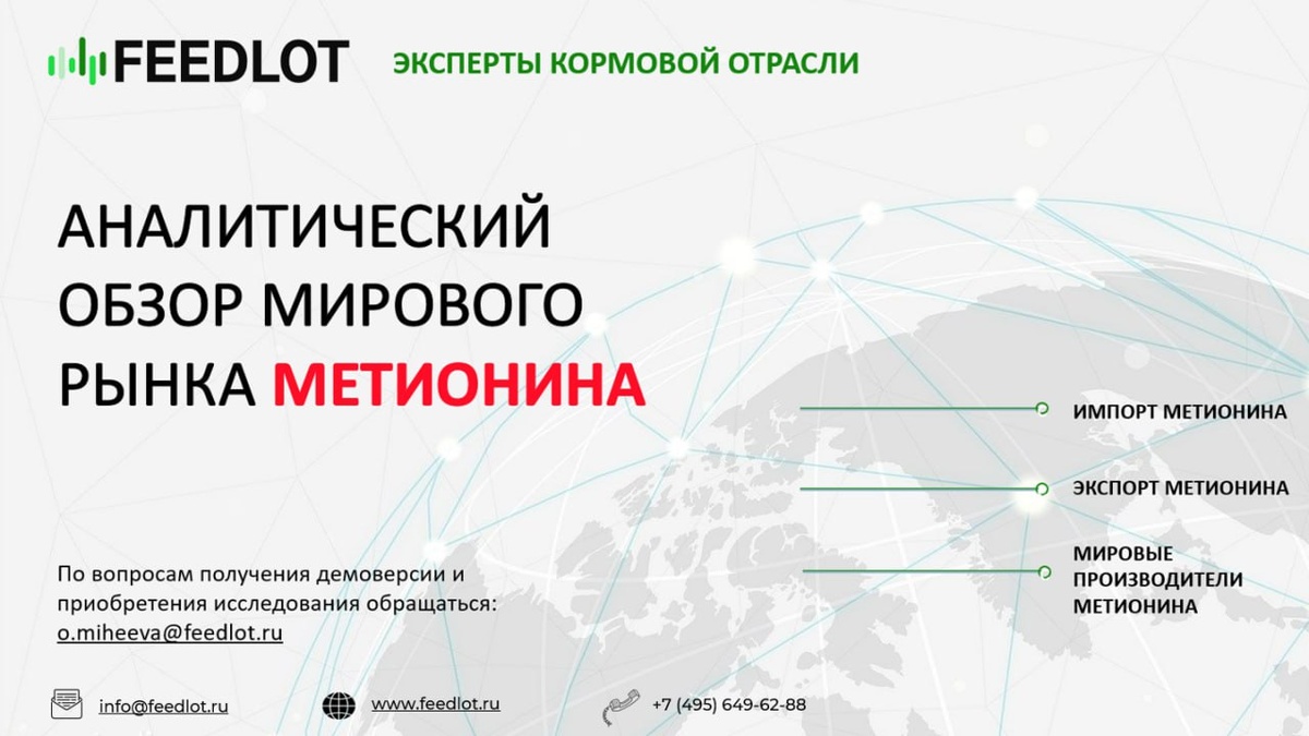 ✔️Рынок метионина – ключевой сегмент глобального рынка аминокислот, применяемых в кормовой индустрии. Новое исследование информационно-аналитического агентства FEEDLOT рассматривает динамику мирового экспорта и импорта метионина, содержит актуальные данные о средних импортных и экспортных ценах, изучает рынок в разрезе ведущих стран-потребителей и производителей данной аминокислоты. На экспортном рынке метионина лидируют Китай, Сингапур, Бельгия и Япония – их совокупная доля составляет 80%. Что касается импорта, то здесь первую строчку также занимает Китай, затем следуют Бразилия, Индия и Вьетнам. Новый обзор FEEDLOT – это уникальная возможность изучить глобальные тренды на рынке метионина, быть в курсе последних изменений ценовой конъюнктуры. Новое исследование «Аналитический обзор мирового рынка метионина» содержит аналитические данные за последние 5 лет и более детально данные за период с января по июль 2025 года, объем 21 слайд, формат PDF. Содержание обзора: Импорт метионина -