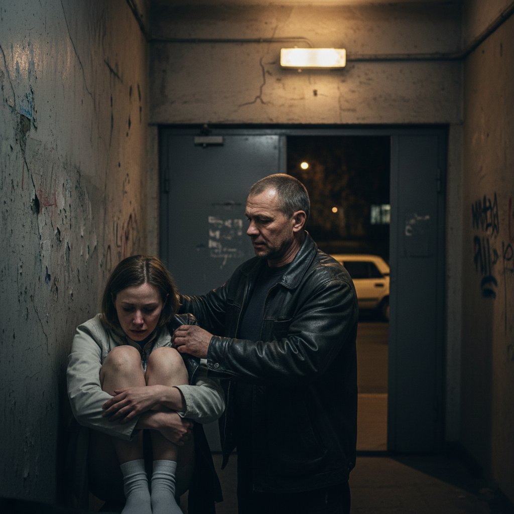 Он подъехал через двадцать минут на своей старой, но ухоженной иномарке, которую сам и собирал по винтику. Увидел её — бледную, в носках на грязном бетоне, — и на его лице не было ни удивления, ни паники. Только та же спокойная, тяжелая решимость, что и в его голосе. Он снял свою потёртую кожаную куртку и накинул ей на плечи. Грубая ткань пахла им — потом, бензином и чем-то безусловно мужским.