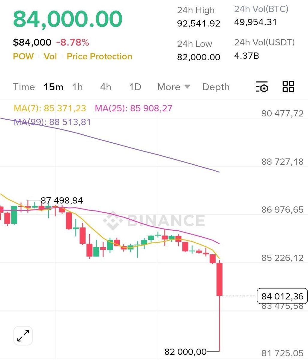 πͺ Bitcoin Π² ΠΌΠΎΠΌΠ΅Π½ΡΠ΅ ΠΏΠ°Π΄Π°Π» Π½ΠΈΠΆΠ΅ $82 000.