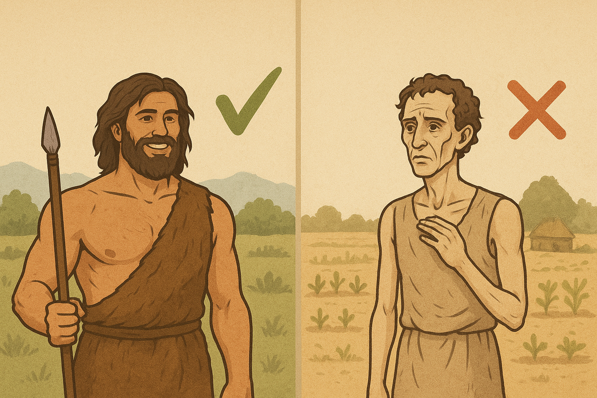 Когда мы говорим о развитии человечества, переход к земледелию обычно воспринимается как огромный шаг вперёд. Люди перестали кочевать, построили поселения, научились хранить урожай и обеспечивать себя едой. Но есть одна деталь, которую редко обсуждают: здоровье первых земледельцев оказалось хуже, чем здоровье охотников-собирателей, которые жили до них.