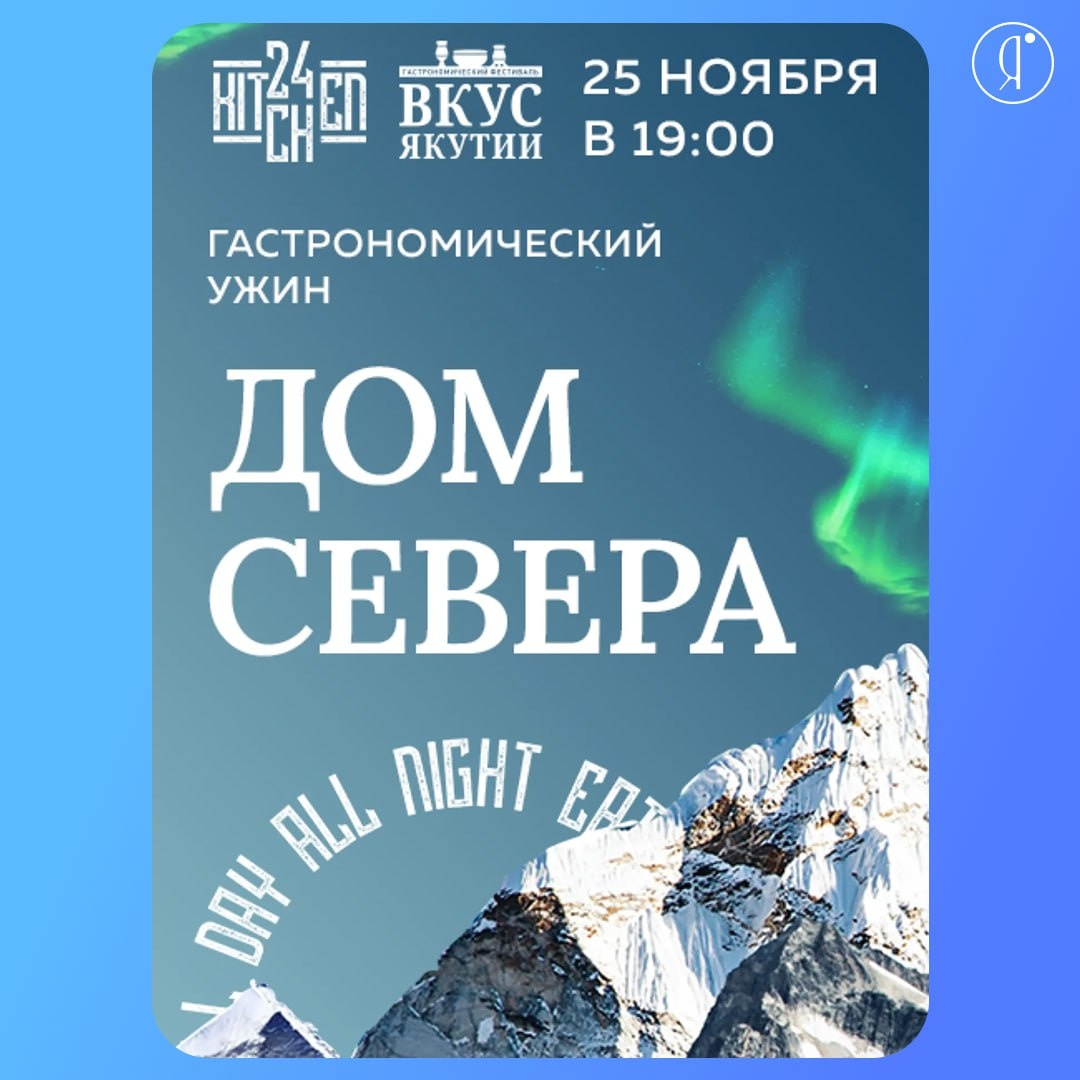 Гастрономический ужин «Дом Севера» #ВГороде #Поесть Ресторан «KITCHEN» представит специальное меню под названием «Дом Севера» «Дом Севера» - это путешествие по бескрайним просторам Якутии Каждое блюдо – это история, рассказанная у костра под треск льда и шепот северного сияния 25 ноября | 19:00 KITCHEN, Губина, 39 5500 руб. Билеты Online Якутия | Ждем вас в МАХ