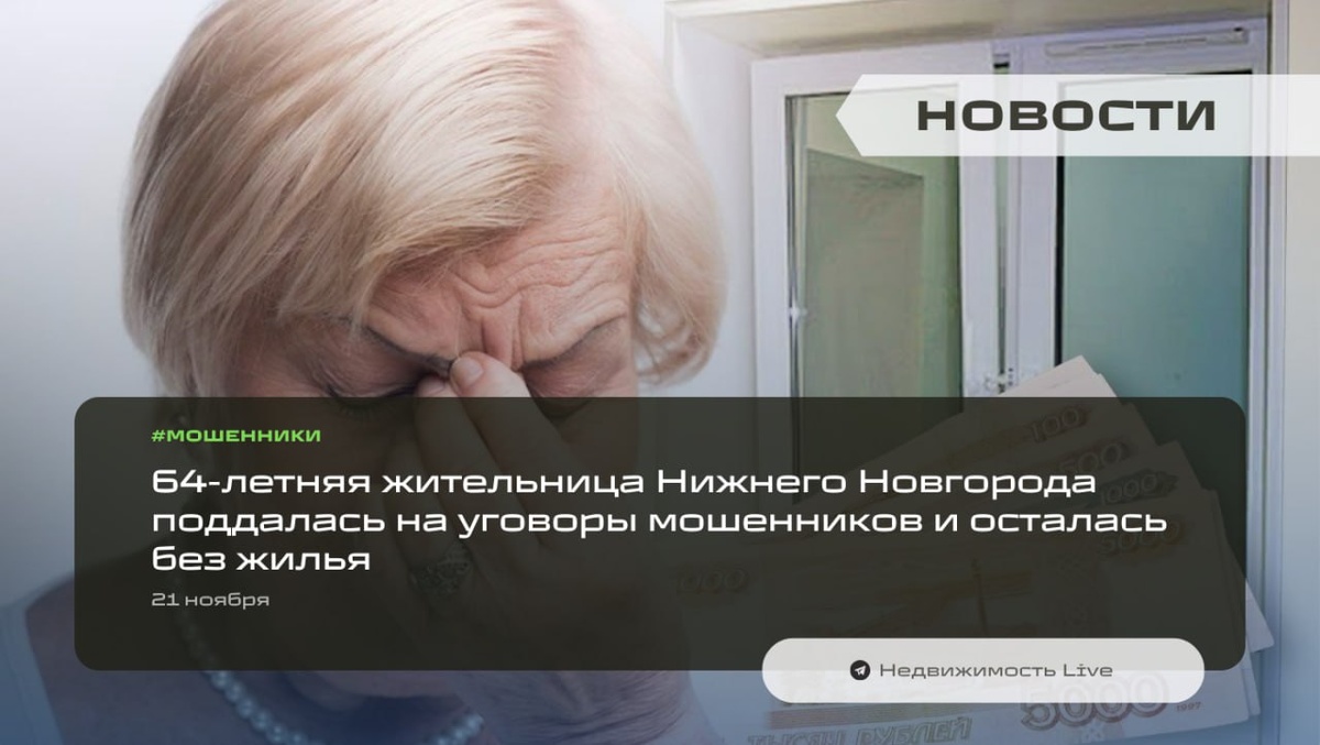 ⚡️ 64-летняя жительница Нижнего Новгорода поддалась на уговоры мошенников и осталась без жилья — Обманную схему раскрывает пресс-служба