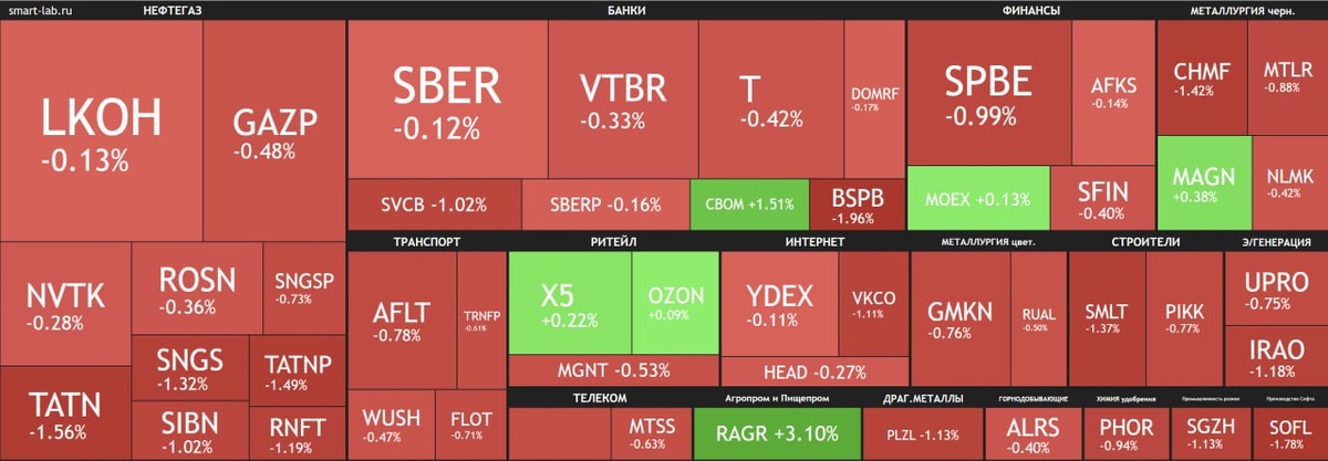 IMOEX после мощного импульса трех дней решает все-таки остыть, снижаясь с утра на 0,5