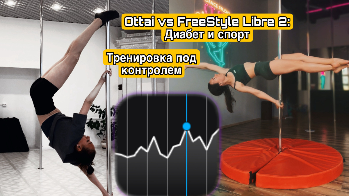 Продолжаю эксперимент с двумя датчиками - Ottai и FreeStyle Libre 2. На этот раз в условиях физической нагрузки. Уже три года я с переменным успехом занимаюсь Pole Fit. Был перерыв на 6-7 месяцев после постановки диагноза, но тогда накрыла апатия и нежелание что-либо делать. Однако, опустим этот меланхоличный эпизод. Сейчас речь совсем не об этом. Pole Fit (пилон) - это, прежде всего, силовой и гимнастический вид спорта, а не танец на каблуках, как многие думают. Это работа с собственным весом, сложные трюки и элементы на вертикальном шесте, которые отлично развивают силу, гибкость и выносливость. Я всегда занимаюсь с утра и натощак, так было и до болезни, и после. Во-первых, я не заставляю себя есть, если не хочу. Во-вторых, так легче выполнять элементы, не чувствуя тяжести в животе. Каждое занятие длится 60 минут. Что в этот момент сахаром? Во время тренировки уровень глюкозы повышается. Почему так происходит? Это не ошибка датчика, а чистая физиология. Силовая нагрузка - это