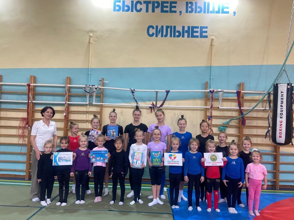 Литературно-спортивная встреча «Со спортом дружить – здоровым быть!» Воспитанницы сш "Старт" отделения художественной гимнастики провели совместно с сотрудниками детской сельской библиотеки №5 с. Архипо-Осиповка литературно-спортивную встречу «Со спортом дружить – здоровым быть!» в рамках ежегодного краевого проекта-марафона здоровья «Старт здоровью детей» и с целью пропаганды спорта, здорового образа жизни детей и подростков Кубани. В ходе встречи юные спортсменки поделились своими успехами в спорте. С удовольствием отвечали на вопросы викторины «Вокруг спорта», вспомнили пословицы и поговорки о здоровье, а также литературных героев, которые много внимания уделяли здоровому образу жизни. Подхватив спортивный настрой призёры краевых и муниципальных соревнований, кандидаты в мастера спорта по художественной гимнастике Александра Кондратьева и Вероника Скалецкая, а также Мария Вишнякова – 1 спортивный разряд по художественной гимнастике провели с ребятами весёлую разминку. Источник: