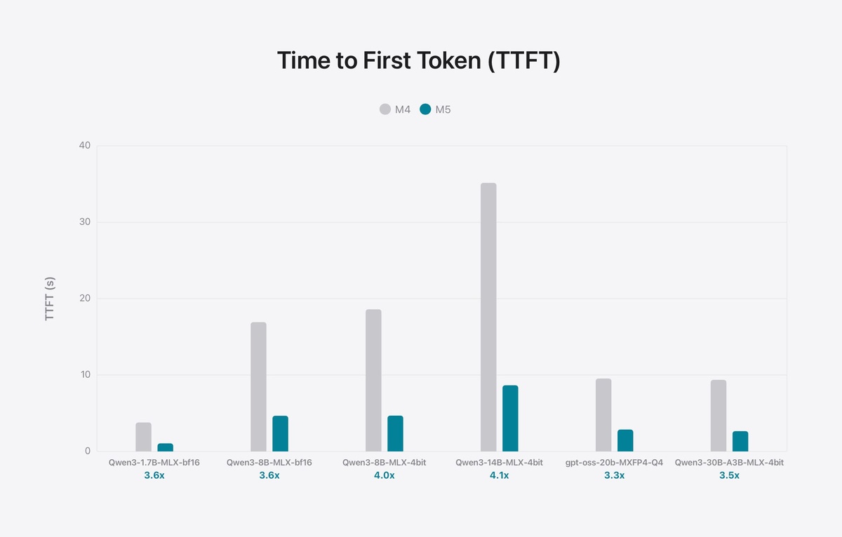 Новая эра профессионалов: Мак на базе M5 может стать первым серийным компьютером для тяжелых нейросетей Apple опубликовала в своем блоге Machine Learning Research данные о производительности процессора M5 при работе с локальными языковыми моделями. Результаты намекают, что Маки на базе этого чипа могут стать первыми серийными машинами, способными развернуть даже крупные модели искусственного интеллекта без танцев с бубном. А это, в свою очередь, способно изменить саму концепцию профессионального компьютера — теперь тяжелые задачи лежат не столько в области монтажа видео или трехмерной графики, сколько в запуске и работе с нейросетями. Для тестирования компания использовала собственный фреймворк MLX — открытый инструмент для запуска моделей машинного обучения Маках с М-процессорми. Главное преимущество этой системы заключается в использовании унифицированной архитектуры памяти чипов Apple: данные не перемещаются между центральным и графическим процессорами, что экономит время и энерги