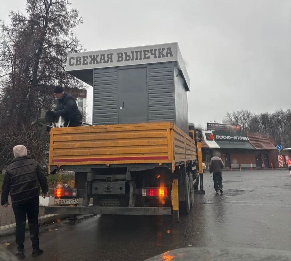 Ларёк “Свежая выпечка” возродился рядом с рестораном фастфуда “Вкусно – и точка!” вблизи брянского Кургана Бессмертия аки Птица-феникс… Что символично по-своему. И там уже вовсю намывают витрину-меню. Несколько дней назад, как ранее сообщал “Брянскмй ворчун”, в Советском районе Брянска – на оживлённом пятачке между Курганом Бессмертия и Диагностическим центром – убрали вдруг главного конкурента экс-Макдональдса, или ресторана быстрого питания “Вкусно – и точка!”. Это был ларёк “Свежая выпечка”. Его целиком водрузили на грузовик и увезли в неизвестном направлении. – У них был договор аренды на три года. Через торги, – пояснил тогда в комментариях к нашему посту в Телеграме осведомленный по многим вопросам брянский таксист и наш постоянный читатель Кирилл Ивкин. Другой наш читатель, пишущий комментарии под псевдонимом Michael Butcher, так отреагировал на случившееся (приводим его слова, убрав не хорошую лексику) – он сделал упор на сетевой ресторан: – Абсолютно всё равно, что это произош