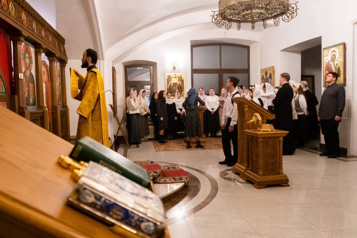 Святителю отче наш Тихоне, моли Бога о нас! Ежегодный Актовый день прошёл в ПСТГУ в день годовщины избрания святителя Тихона на Патриарший престол. Преподаватели, студенты, сотрудники и гости университета собрались в главном здании ПСТГУ, историческом здании Московского Епархиальном доме, чтобы вместе помолиться и отпраздновать. Ранняя литургия в престольный праздник состоялась в храме святителя Тихона и святых отцов Всероссийского Поместного Собора 1917–1918 годов. Богослужение возглавил проректор по социальной и миссионерской работе священник Филипп Ильяшенко. Вместе с хором ИФФ пели и молились сотрудники и волонтёры университета, участвующие в подготовке торжественного Акта. Соборная литургия прошла в Князь-Владимирском храме. Богослужение возглавил митрополит Ташкентский и Узбекистанский Викентий, ему сослужили ректор ПСТГУ епископ Егорьевский Мефодий и выпускник нашего университета епископ Волгодонский и Сальский Антоний. На клиросе пел хор БФ п/у священника Алексея Зайцева и х