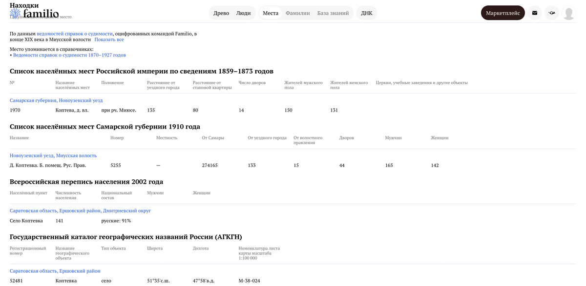 Тогда я пошла дальше — не в архивы, а в интернет, туда, где люди, как я, ищут утраченные имена. И нашла сайт — Familio — familio.org/places.