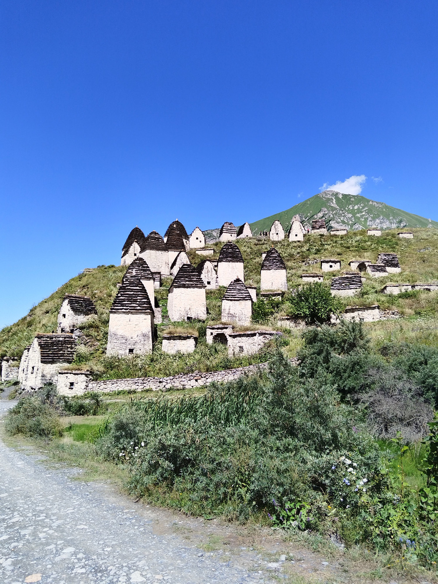 Одной из главных достопримечательностей Северной Осетии, много лет привлекавшей туристов, является Даргавсский комплекс каменных склепов, получивший название "Город мертвых". Этот некрополь расположен в горах в 70-ти километрах от Владикавказа. Добраться до него можно и на легковом автомобиле. Место загадочное, немного жутковатое, но очень живописное. Комплекс является национальным музеем. В его состав входят 95 наземных и полуподземных усыпальниц 14-18 веков. Склепы представляют собой хаотичные многоярусные сооружения с двухскатной или четырехскатной крышей. В стенах можно увидеть окошки, через которые в склеп укладывался деревянный настил и укладывались тела покойных. Как известно, ранее эти окошки закрывали деревянной дверцей или камнями, чтобы внутрь не попадала влага и не проникали дикие животные. Если подойти ближе и заглянуть в некоторые из таких окон, можно увидеть останки людей. Внутри усыпальниц стелился деревянный настил, на котором укладывали покойных. В одной такой мо