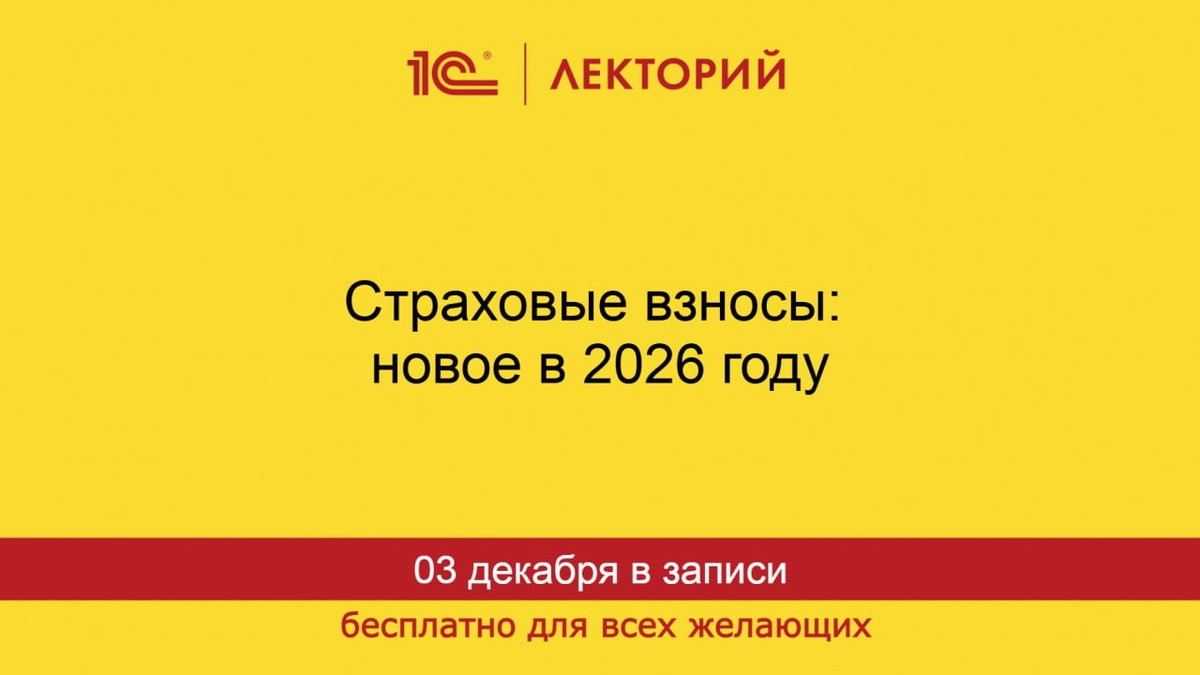 Страховые взносы: новое в 2026 году В ходе лекции Любовь Котова, начальник Отдела нормативно-правового регулирования страховых взносов Департамента налоговой политики Минфина России, расскажет, какие изменения законодательства по страховым взносам вступят в силу с 2026 года: 🟠предельная база для начисления страховых взносов; 🟠для кого будут отменены или увеличены пониженные тарифы страховых взносов; 🟠обязательные взносы для директора-учредителя; 🟠страховые взносы для плательщиков на АУСН; 🟠исчисление и уплата взносов ИП; 🟠материальная помощь на ребенка, не облагаемая взносами; 🟠в каком размере не облагаются сберегательные взносы по программе долгосрочного страхования; 🟠другие изменения; 🟠ответит на вопросы слушателей. ☝️ Зарегистрироваться на лекцию и задать вопросы лектору 🚨Подписывайтесь на @lector_1c