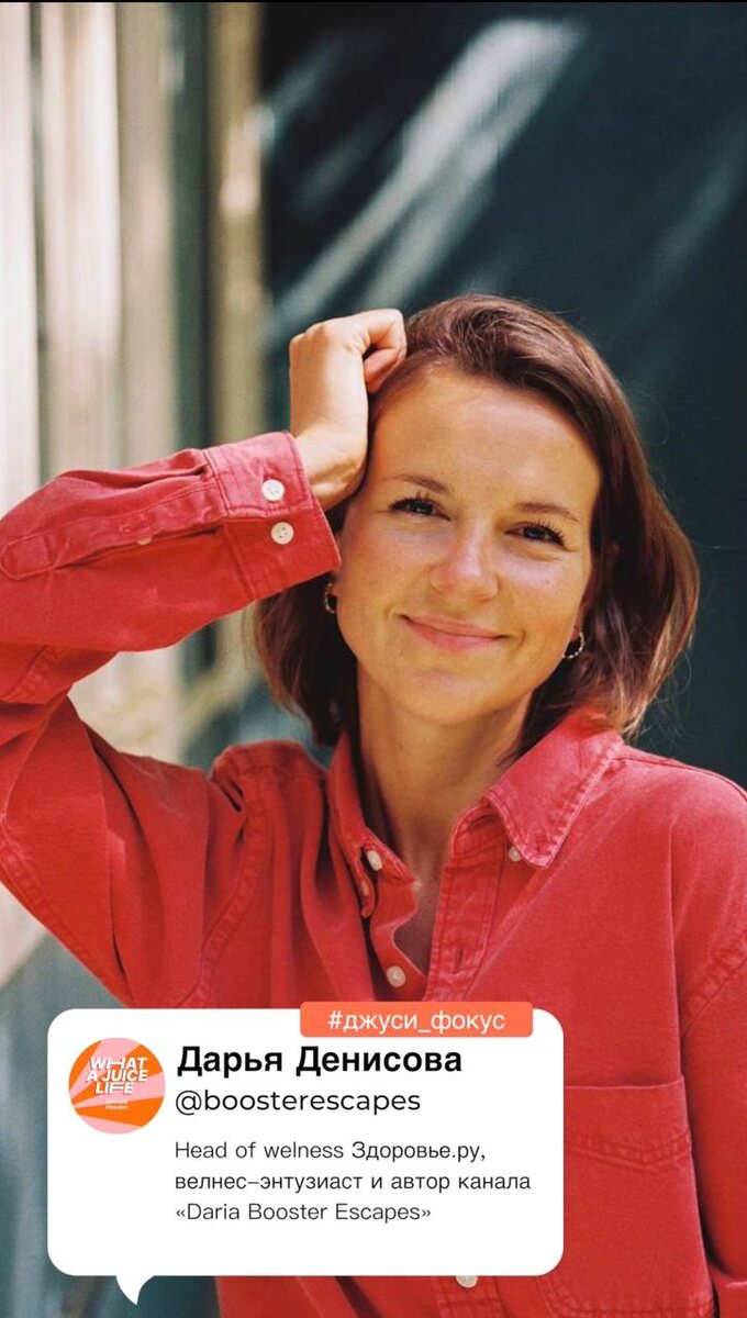 Сегодня в рубрике #джуси_фокус — Дарья Денисова, Head of Wellness в Здоровье.ру, велнес-энтузиаст и спорт-евангелист, автор канала Daria