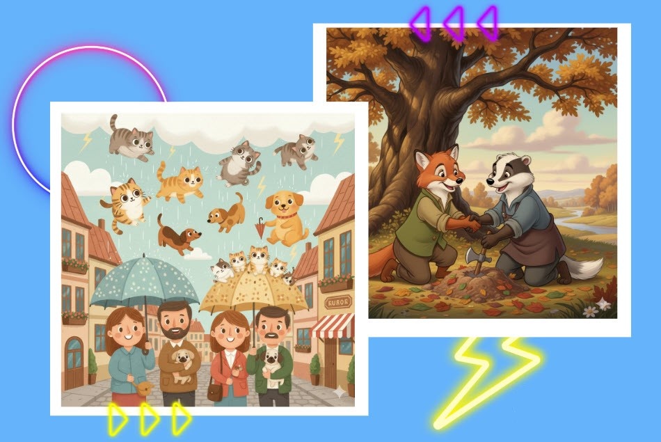 Представьте, что вы слышите фразу "It’s raining cats and dogs" и пытаетесь понять ее буквально. Картина получается странная: с неба падают кошки и собаки. На деле же это просто значит «льет как из ведра». Вот это и есть идиома — устойчивое выражение, смысл которого не связан со значениями отдельных слов.