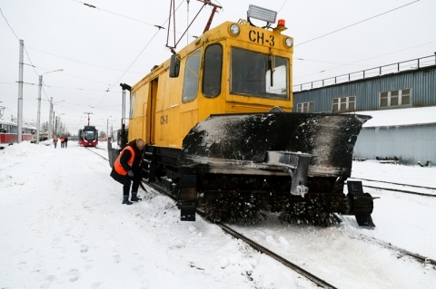 В арсенале «Электротранса» два спецсостава: снегоочиститель «ГС-4» 1986 года и снегоуборщик на базе трамвайного вагона. Как рассказал замдиректора предприятия Сергей Григорьев, техника используется в зависимости от погодных условий.