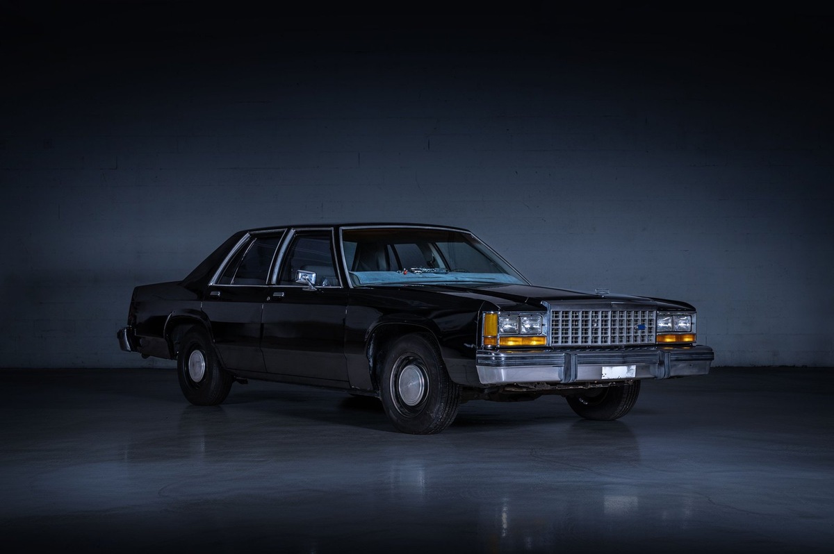 Ford Crown Victoria 1987 года выпуска был построен компанией Cinema Vehicle Services в Северном Голливуде для фильма «Люди в черном 2», который вышел на экраны в 2002 году. Автомобиль оснащен полностью функциональными спецэффектами, которые зрители могли видеть на футуристической патрульной машине агентов «MIB». Внутри автомобиля сохранилась та самая красная кнопка на рычаге переключения передач, дополненная оригинальной надписью «Не прикасайтесь к красной кнопке». После съемок автомобиль был выставлен в коллекции Flying Garage, а затем поступил в музей Volo в Иллинойсе, где он был выставлен как оригинальный автомобиль из фильма «Люди в черном 2». В 2019 году Ford был приобретен компанией Movie Cars Central и с тех пор хранился в первозданном виде. Ford LTD Crown Victoria будет продан на аукционе Bonhams с сертификатом подлинности, подписанным Рэем Клариджем, президентом Cinema Vehicle Services.