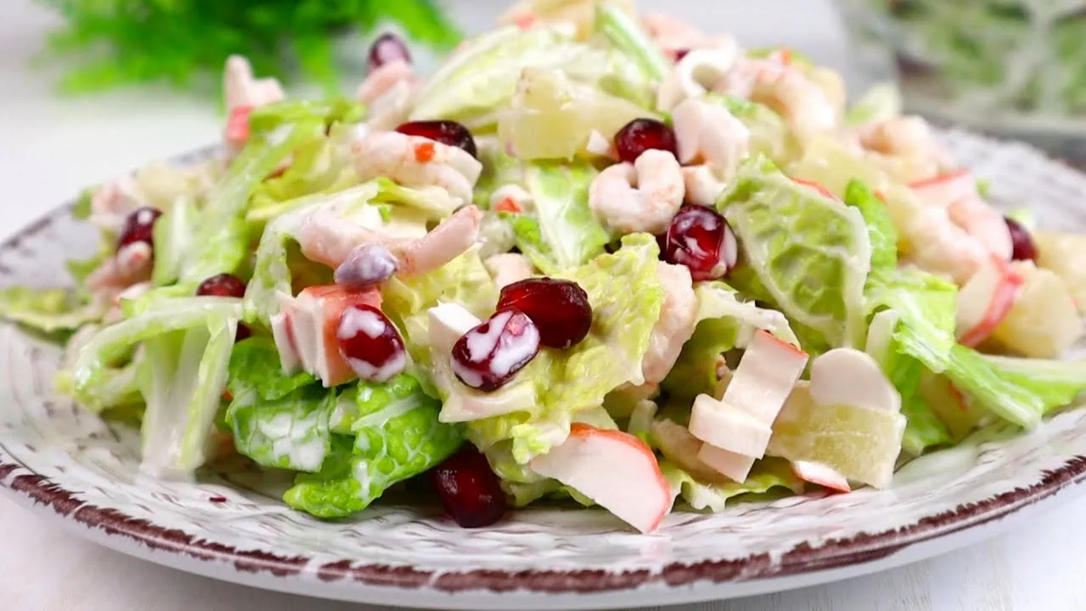 Салат «Стрелы Амура» с креветками и гранатом: красивый, яркий и очень вкусный