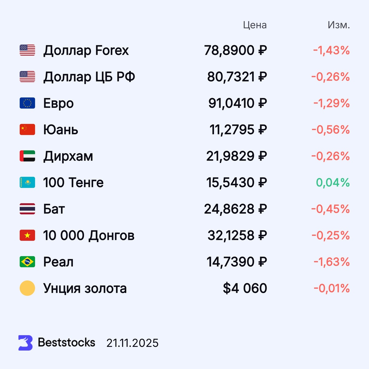Курсы доллара США, евро, юаня, дирхама, тенге и золота на текущий момент #валюта #курс #доллар #евро #юань #дирхам #тенге #золото ••••• 🔥 Получайте более 400 свежих прогнозов по акциям каждый день. Выбирайте самый высокий потенциал, рейтинг аналитика, срок прогноза и биржу, где торгуется акция.