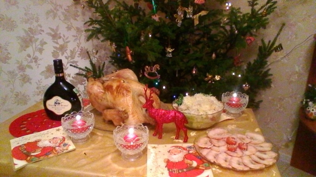 Наш Рождественский стол того года. Мужчин в семье нет. Детей нет. Угадайте, зачем такая большая индейка нашей семье? 😂😂😂❤️❤️
