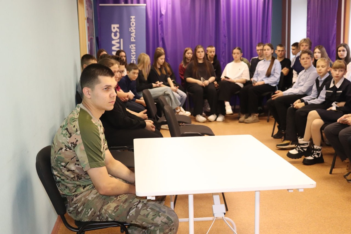 В молодежном центре «Импульс» прошла встреча учащихся 6, 9 классов Партизанской средней школы с бойцом СВО, находящимся в краткосрочном