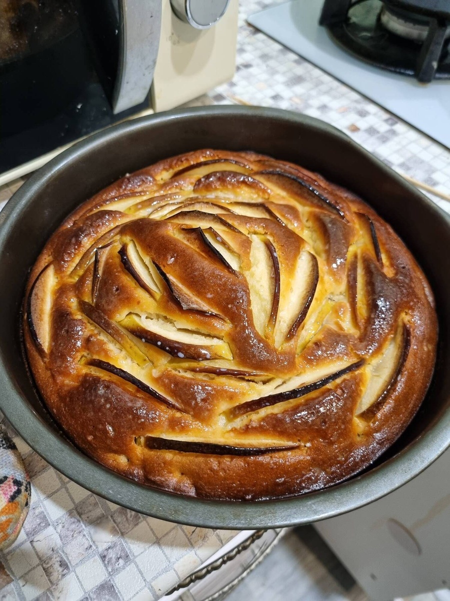 Яйца - 3 шт сахар - 200 г (1 стакан) сметана - 150 г (я заменяла йогуртом) растительное масло - 80 мл ванильный сахар - 1 ч.л. разрыхлитель - 2 ч.л. соль - щепотка мука - 250 г (2 стакана) яблоки - 4-5 шт (я брала 2 крупных) 5. Разогреваем духовку на верх и низ на 180-190⁰, выпекаем в смазанной маслом форме около часа. Я пекла ~50 минут, проверяя тесто. Лайфхак от подруги: как только достали из духовки, проткните в нескольких местах тесто, промакните, не жалея, тёплым молоком, перемешанным с растопленным сливочным маслом, дайте остыть 💨