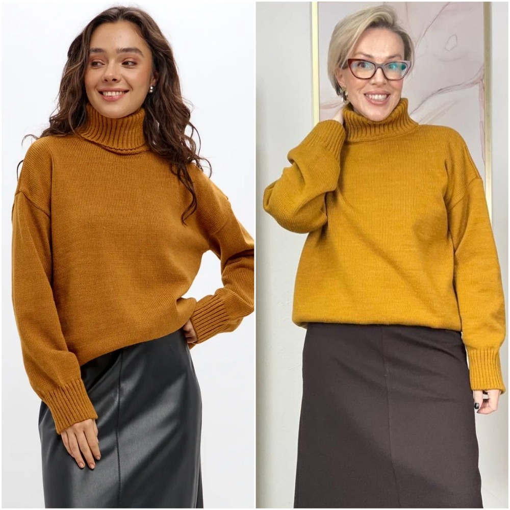 Здравствуйте, дорогие читатели! Меня зовут Ирина, я - стилист, и на этом канале показываю одежду и аксессуары с Wildberries такими, как они есть, то есть, из серии "ожидание/реальность". Мои параметры: рост 169 см, вес 67 кг, 94-74-100 ✅Основной канал: Стильно - не значит дорого! Ставьте лайк в поддержку канала, и давайте смотреть на мою сегодняшнюю покупку. Свитер Состав: 30% шерсть, 70% акрил Размеры: 42-52 Цена: 4144 руб Горчичный свитер оверсайз: уютный акцент Этот свитер в насыщенном горчичном оттенке сочетает современный крой и практичность материалов. Свободный силуэт из шерстяной пряжи с акрилом создает объемный контур, мягко скрывающий особенности фигуры. Высокий воротник и удлиненная спинка обеспечивают многослойность и дополнительное тепло. Крупная вязка добавляет текстуру, сохраняя легкость полотна. Универсальная длина позволяет носить модель с брюками, юбками и леггинсами. Качество исполнения проявляется в ровных швах и устойчивости формы после носки. Свитер демонстрирует