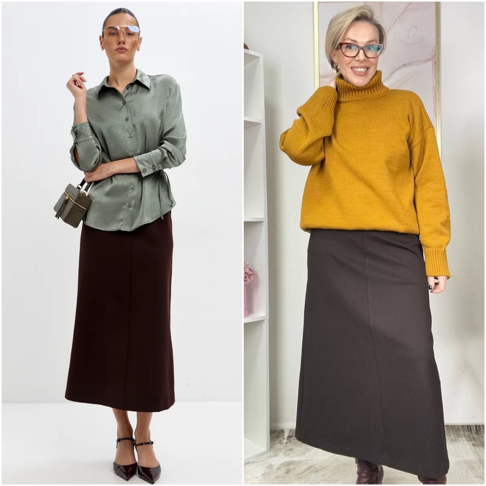 Здравствуйте, дорогие читатели! Меня зовут Ирина, я - стилист, и на этом канале показываю одежду и аксессуары с Wildberries такими, как они есть, то есть, из серии "ожидание/реальность". Мои параметры: рост 169 см, вес 67 кг, 94-74-100 ✅Основной канал: Стильно - не значит дорого! Ставьте лайк в поддержку канала, и давайте смотреть на мою сегодняшнюю покупку. Шоколадная юбка-трапеция: непринужденная элегантность С первого взгляда привлекает благородный глубокий оттенок горького шоколада — цвет, который одинаково органично смотрится и в деловой обстановке, и в вечернем образе. Плотный трикотаж с преобладанием вискозы мягко облегает бедра, чтобы затем плавно расклешиться книзу, создавая летящий силуэт. За счет эластичности материала юбка движется вместе с телом, не образуя заломов и не стесняя шага. Высокая посадка деликатно акцентирует талию, а скрытая молния сзади сохраняет чистоту линий. Длина макси достигает щиколоток, создавая вытягивающий эффект — этот фасон особенно выигрышно смотр