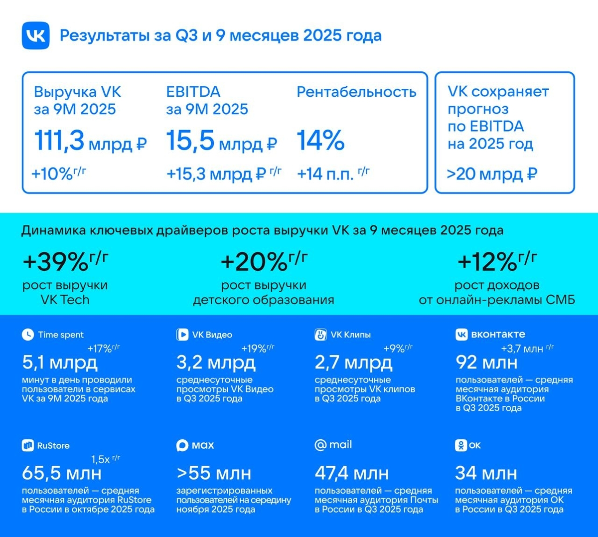 - Целых 97% рунета — это про нас с вами. Каждый месяц. 78 миллионов человек заходят в их сервисы ежедневно. В среднем мы проводим с ними больше часа в день. - Мессенджер MAX уже объединил более 55 миллионов человек! А Дзен в России читают 72 миллиона пользователей каждый месяц. - VK Клипы смотрят по 2,7 миллиарда раз в день! Количество авторов выросло почти на 90%. - Доходы от рекламы выросли на 12%. - Подробней по всем направлениям роста, о новых ИИ и т.д. можно почитать здесь: vk.company/ru/press/releases/12155 Как вам такие цифры, друзья? Это всё благодаря нам с вами. Кто там громче всех кричал, что народ массово уходит из ВК? Ага, как же... Не очень-то торопливо они уходят))) Еженедельный дайджест поможет вам быть в курсе всех публикаций в "Функциях ВКонтакте" за прошедшую неделю. Делай бизнес как профессионал,