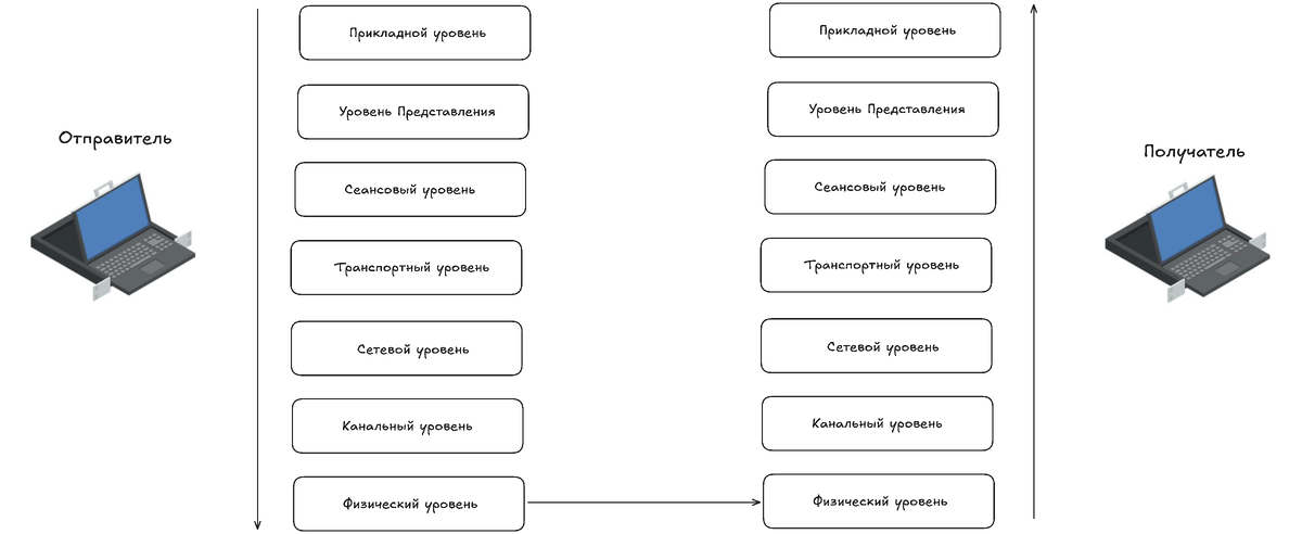 Давайте пройдемся по всем уровням снизу вверх, следуя аналогии с отправкой письма.
